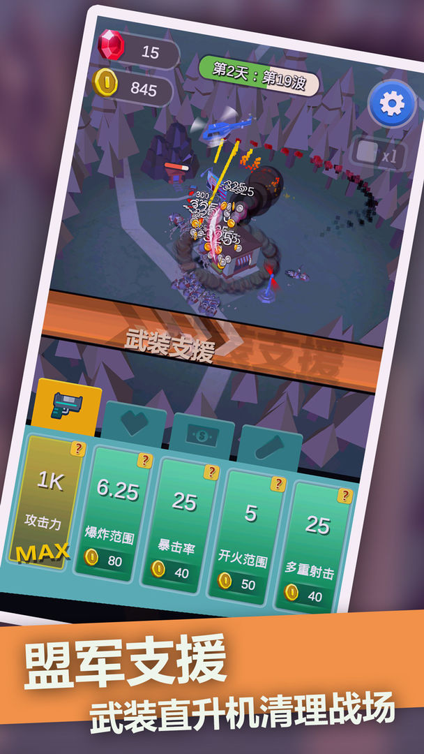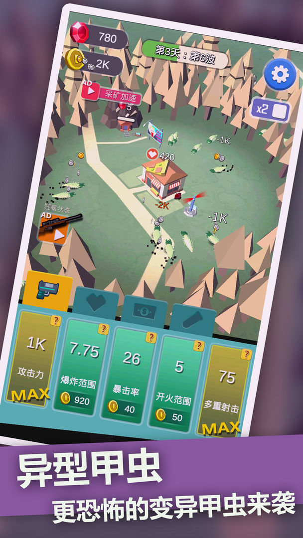 1、僵尸末日塔防丰富的武器系统可以消灭僵尸并增加枪战的范围。