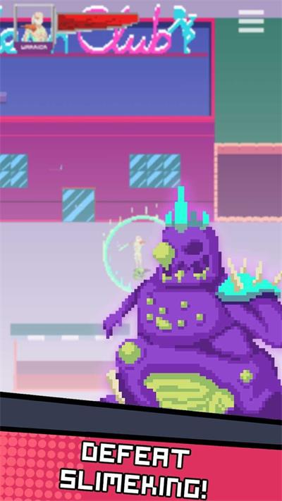 1、游戏场景充满了80年代的复古氛围。玩家将置身于一个像素化的城市背景中,街道上有各种各样的建筑物和道具,营造出一个独特的游戏世界。