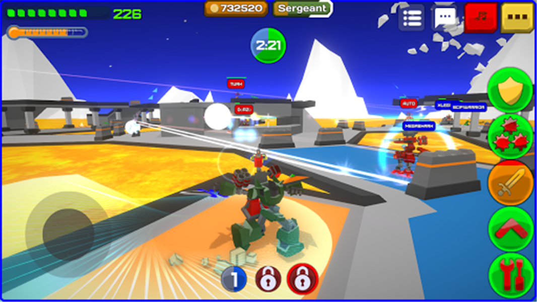 这是一款3D射击竞技题材手游,玩家将会被传统到同一张地图上进行对战,你需要驾驶着机甲加入到这场大乱斗当中,机甲分为远程射击和近战肉搏模式,可以根据具体情况随意切换。利用策略来进行逃杀,开动脑力,组装成一个完整的机器人。