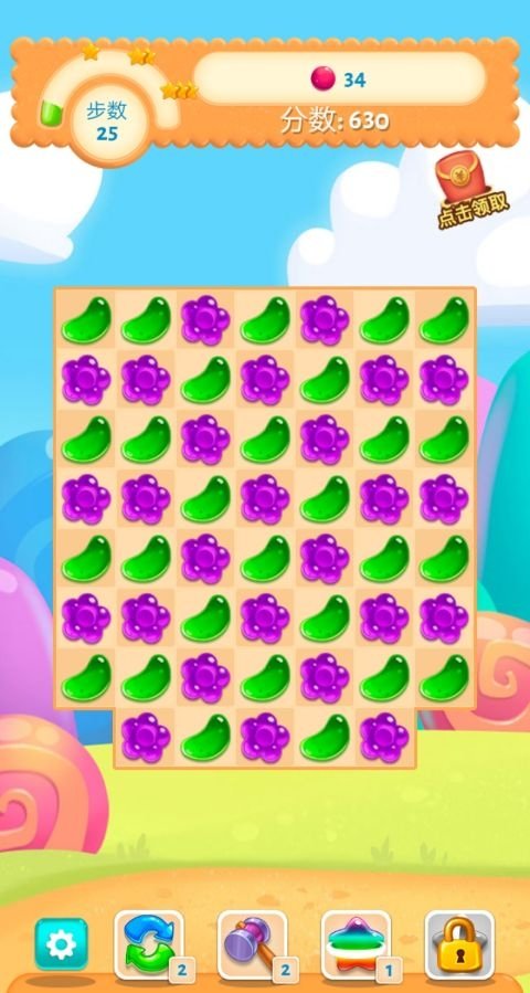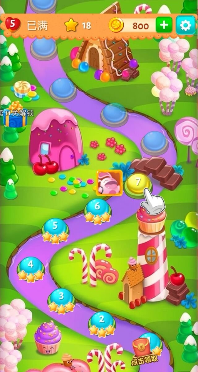 2、游戏有各种各样的关卡和挑战等待着玩家去解锁。玩家需要通过点击、移动或消除糖果等操作来完成任务,每个关卡都有不同的目标和难度,让玩家保持对游戏的兴趣和挑战性。
