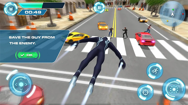 2、作为一款动作游戏,超级英雄蜘蛛侠行动的战斗非常刺激。玩家可以使用蜘蛛侠独特的能力,如爬墙、跳跃和蜘蛛丝等,与敌人进行战斗。
