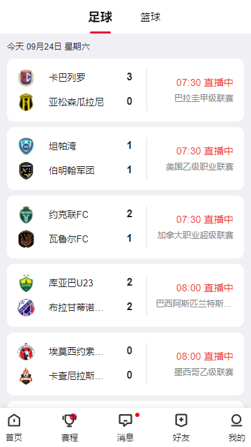 2、[赛程] 前后七日赛事赛程尽情查看,覆盖各大顶尖体育赛事。