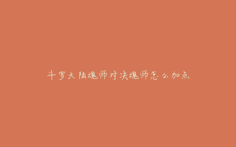 斗罗大陆魂师对决魂师怎么加点