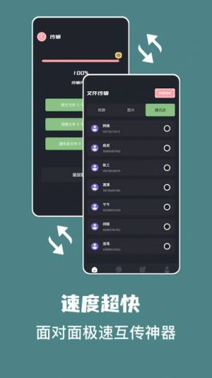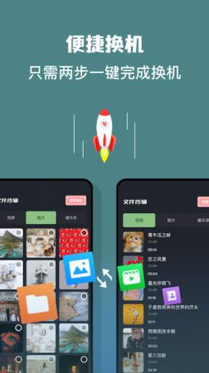 这款应用可以来帮助用户们达成文件传输的目的,高效来建立起两台设备之间的联系,选择你需要传输的数据内容,可以快速的建立传输任务,在最短的时间内来完成文件的传输使用,为用户们的换机处理是提供了很多的方便。