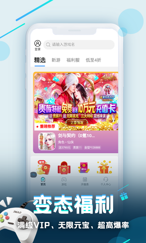 2、带玩家来这里享受游戏中的特权。超级福利免费给你,游戏道具和礼物每天免费给你;