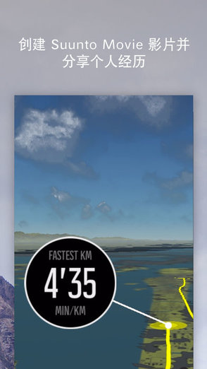 利用为个人训练制作的独特Suunto Movie影片,将个人Move分享到 Facebook 和 Twitter,影片包含融入个人照片的细致三维地图。 添加感觉和描述,个性化每项训练活动,使其成为难忘回忆。