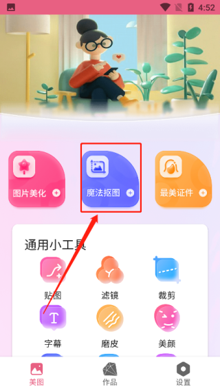 3、进入抠图,点击一键抠图,可帮助更快抠图
