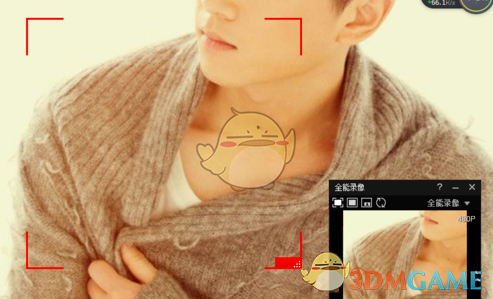 3.点击全能录像之后会出现以下界面,其中红色的四角框是可以调节大小的,你可以根据你自己要录制视频的大小调节。点击红色的按钮就可以开始录像啦,想结束就按原来的红色按钮(此时是白色正方形),然后就可以生成一段小视频了