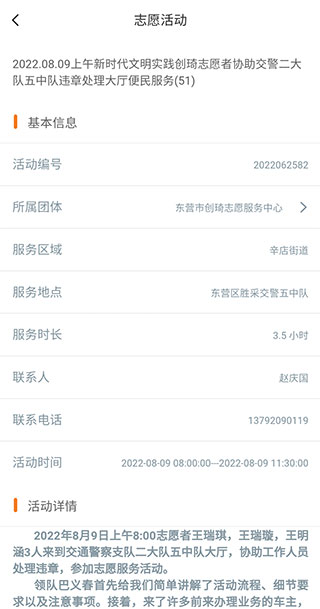2、点开志愿活动的【详情】页,还可以看到更多活动信息,便于用户了解。