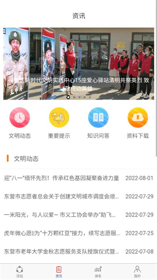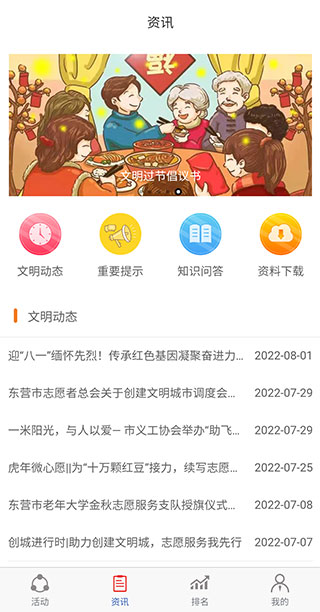 3、切换到【资讯】页,则可以看到文明动态、重要提示、知识问答等板块。