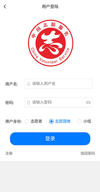 5、用户点击【我的】页面,进行志愿者登陆后就可以使用软件的全部功能。