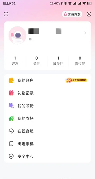 在皮皮蟹app我的界面中,找到安全中心选项,点击后进入安全中心界面。