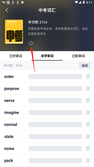 点击词书旁边的云朵图案即可下载实现离线背单词
