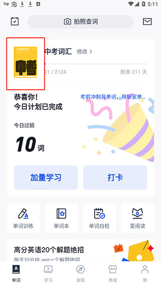 3、来到首页点击我们正在背的词汇
