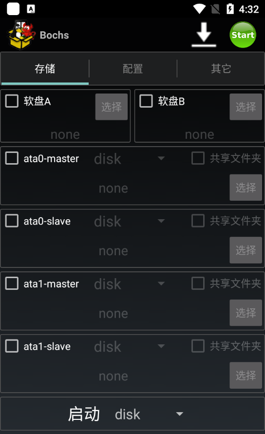 2、用户安装过该APK后,继续下载SDL.zip文件,将其放入放到SD卡根目录,路径/*.*,然后将一个操作系统磁盘映像。/.iso(win /XP)放到SDL文件夹中,并将它更名为"c.img",并从appdrawer运行Bochs,加载一段时间即可。