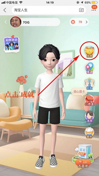 3、点击[淘宝人生]中的[成就]按钮;