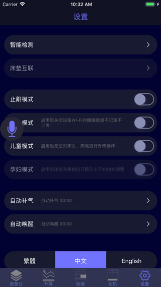 2、专注于睡眠监测、记录的手机应用程序,通过本软件与智能床垫的连接,轻松实现手机对床垫的软硬调节,床头床尾的高度调节。