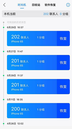 误删找回:通过回收站或时光机,随时找回误删的联系人