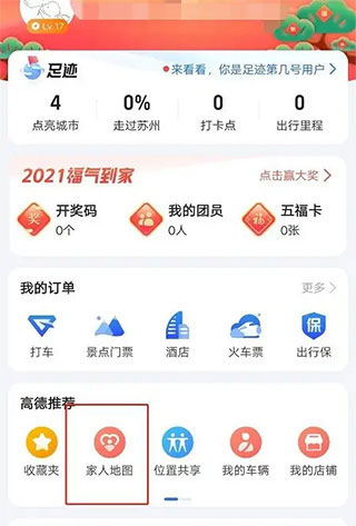 打开高德地图,点击我的,点击家人地图。