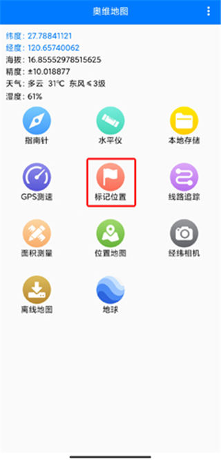 【标记位置】可以收藏您当前位置的经纬度、海拔、相关照片等信息保存,点开之后可以在地图上找到对应的位置点
