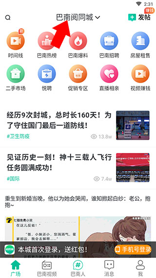 3、选择后点击下方巴南人即可浏览同城信息