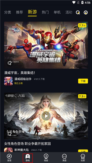 (1)首先登陆一号玩家APP,进入【游戏】界面。