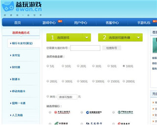 (1)首先登陆益玩官网(),选择充值方式、游戏、游戏服务器。