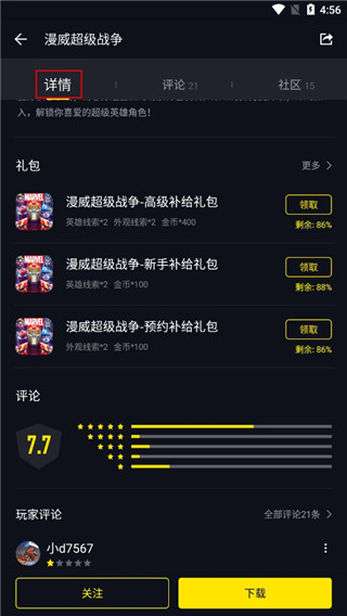 (2)选择自己感兴趣的一款游戏,详情页向下滑,可查看近期的活动、礼包。