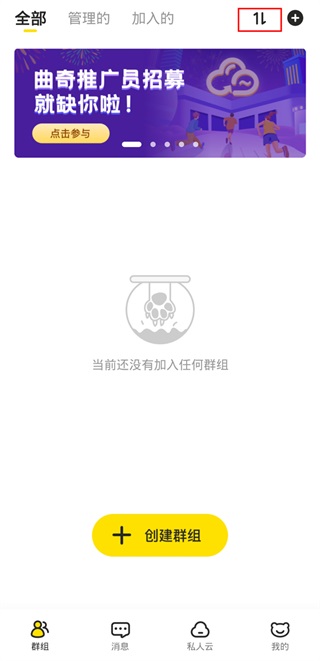 进入曲奇云盘APP后,首先我们需要创建一个多人共享团队,方便管理自己的好友群,无论是办公还是生活都可以使用,点击【我的】-【创建团队】,输入团队名称,点击确定。