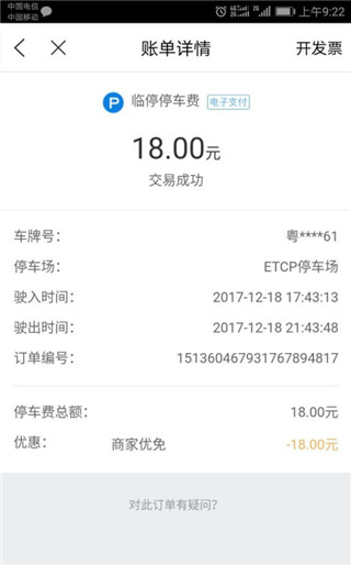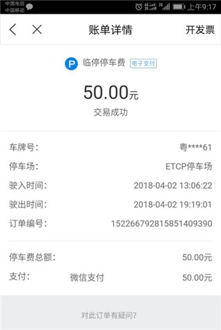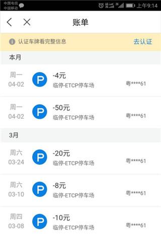 2、点击任意一个停车账单