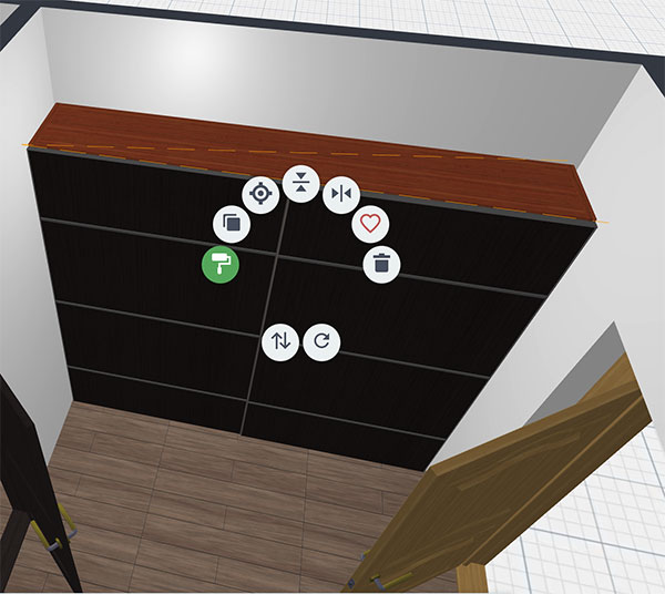 3、切换到3D视图,以更好地查看我们将要自定义的颜色和材料。单击衣柜,然后使用Roller图标进入自定义菜单: