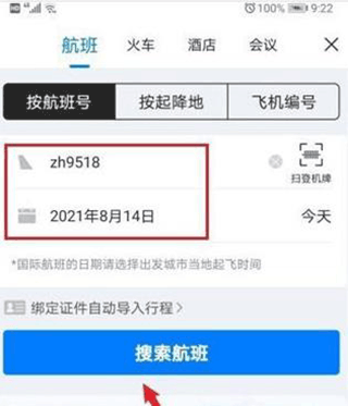 2、输入航班信息,点击“搜索航班”
