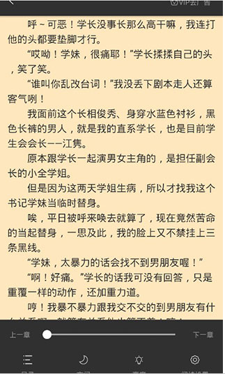 3、打开你喜欢看的书籍,app支持章节目录选择、夜间模式、自定义调整亮度等功能。