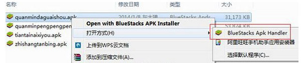 3、安装好安卓模拟器BlueStacks后,双击下载好的apk文件就行。