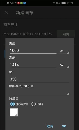 点击“编辑”可改变画布大小