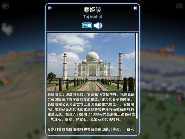 《酷玩地球》中所有的内容都提供中文和英文之间一键切换功能,并且配有双语人工智能朗读,让你在了解世界的同时还能学习英语。