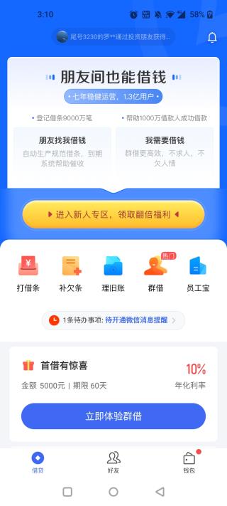 1、熟人借贷,所有交易都发生在朋友之间。借款人实名,出借人匿名,避免当面开口,朋友谈钱不再尴尬。