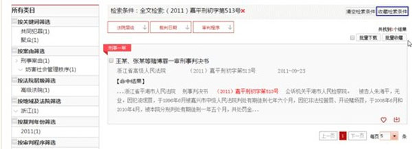 裁判文书网支持在结果中无限次检索。在列表页检索框中输入或选择新的检索条件,默认在当前检索结果的基础上检索裁判文书。