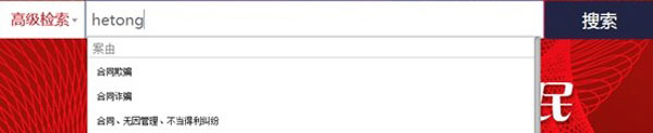 快捷检索通过在快捷检索文本框输入关键词即可实现。快捷检索支持关键词联想推荐。在快捷检索框中输入关键词后,联想推荐案由、关键词、审理法院、当事人、审理人员、律师、律所、法律依据八个类型的信息。并且支持拼音检索,包括全拼和简拼。