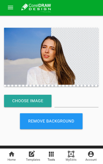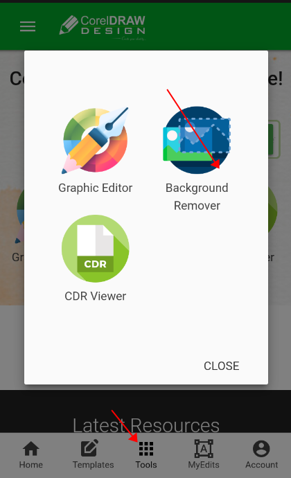 1、打开app后,先点击下方菜单栏中间的tools,然后在弹出的窗口上点击background remover。