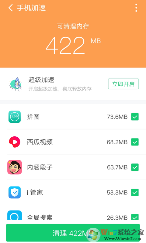 3、手机加速-超强智能一键加速 手机内存秒速释放 清理效果超同行50%