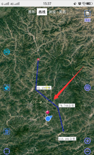 不区分图形框选、画线测距和测绘,工作完成后按住屏幕可以保存工作;