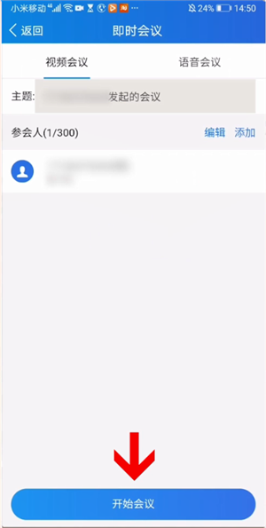 首先打开云视讯app然后注册登录自己的账号,这时点击即时会议,再点击开始会议即可发起会议。