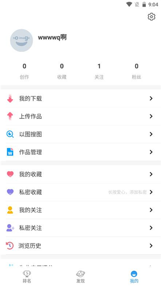 7、进入我的界面,即可看到该账户收藏、粉丝、下载上传等情况;