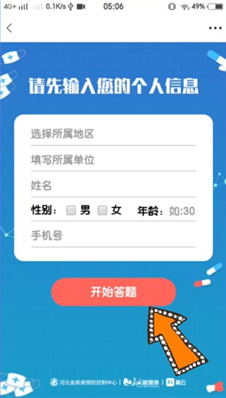 3、进入到题目页面后,点击“立即参与”,在输入自己的信息后,点击“开始答题”即可。