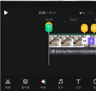 3、添加完成后,滑动下面的素材功能,包括画中画、特效、音乐、文字等;