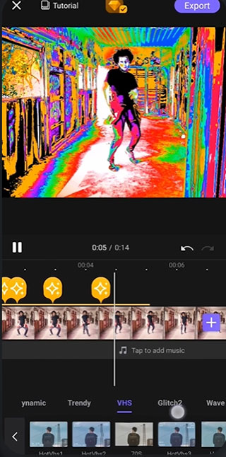 视觉特效 (VFX) 和转场效果是 VivaCut 最受欢迎的两个功能,允许用户一键快速添加最新的流行特效和转场。VivaCut 提供 300 多种 VFX 和过渡效果,并定期更新。
