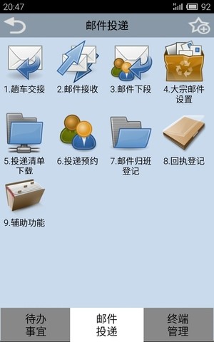 应用中能够帮助邮政投递人员快速便捷查看邮件接收情况,方便工作人员发送邮件。