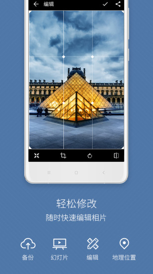 > 图片编辑:内置简单图片编辑器,您可以缩放、裁切、旋转图片,也可以将图片以极佳画质设为壁纸