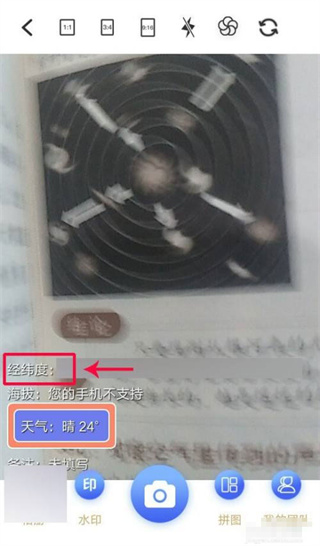 4、最后再进行拍照下来,就可以看到经纬度了。